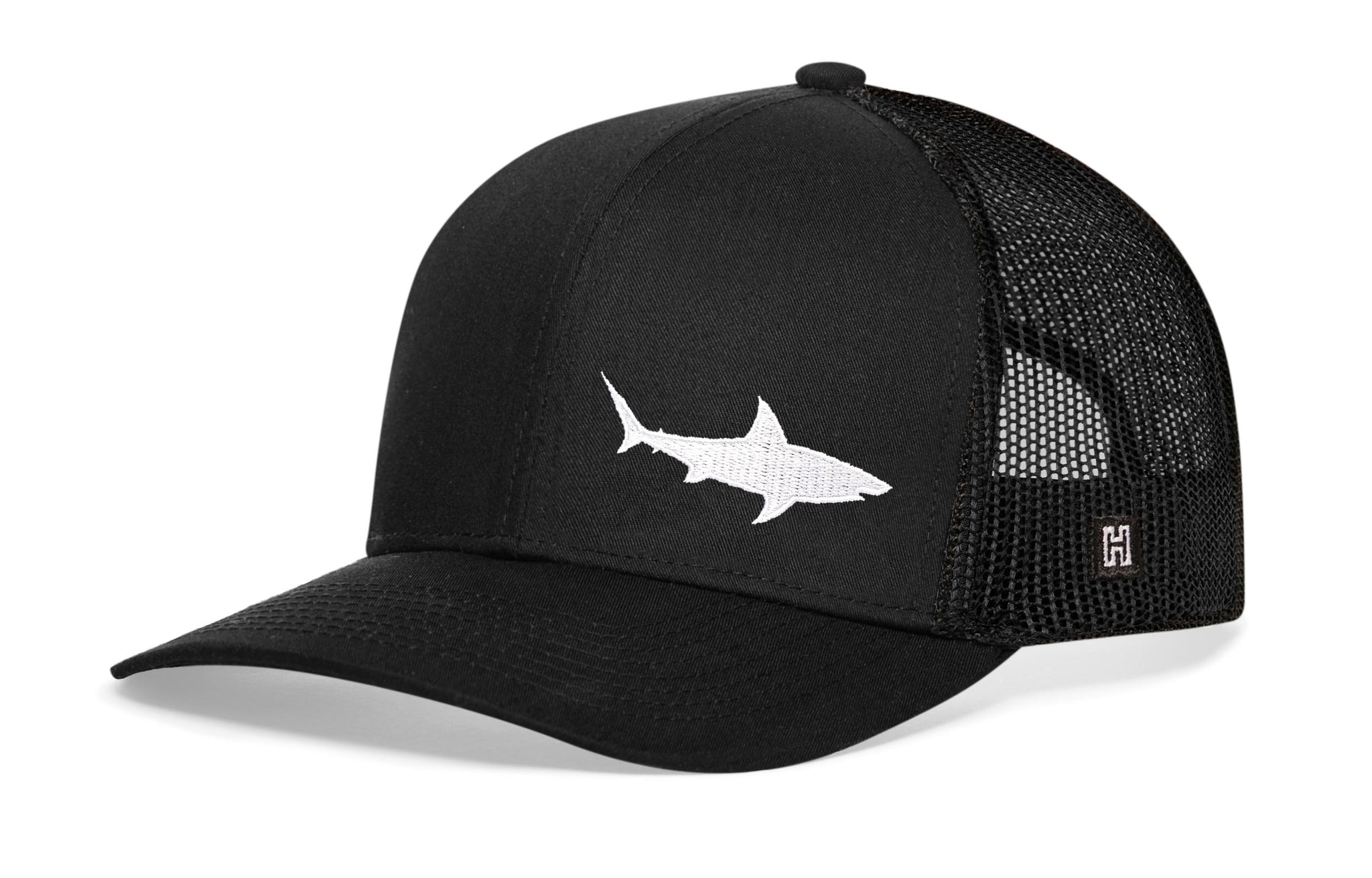 Live the beach & ocean life in style with the HAKA Shark Trucker Hat, featuring a premium beach flat embroidery on our black signature 5.0 trucker.