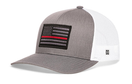 Support Firefighters in style with the HAKA Thin Red Line Trucker Hat, featuring a premium fire tactical embroidered patch on our gray-white signature 5.0 trucker.