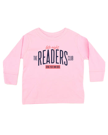Calling all night owls and introverts! The Late Night Readers Club is officially in session—and the only rule is simple: Bring Your Own Book. This long sleeve tee is a tribute to those quiet hours spent getting lost in a story long after everyone else is asleep. Perfect for little readers who feel most at home between the pages of a good book.