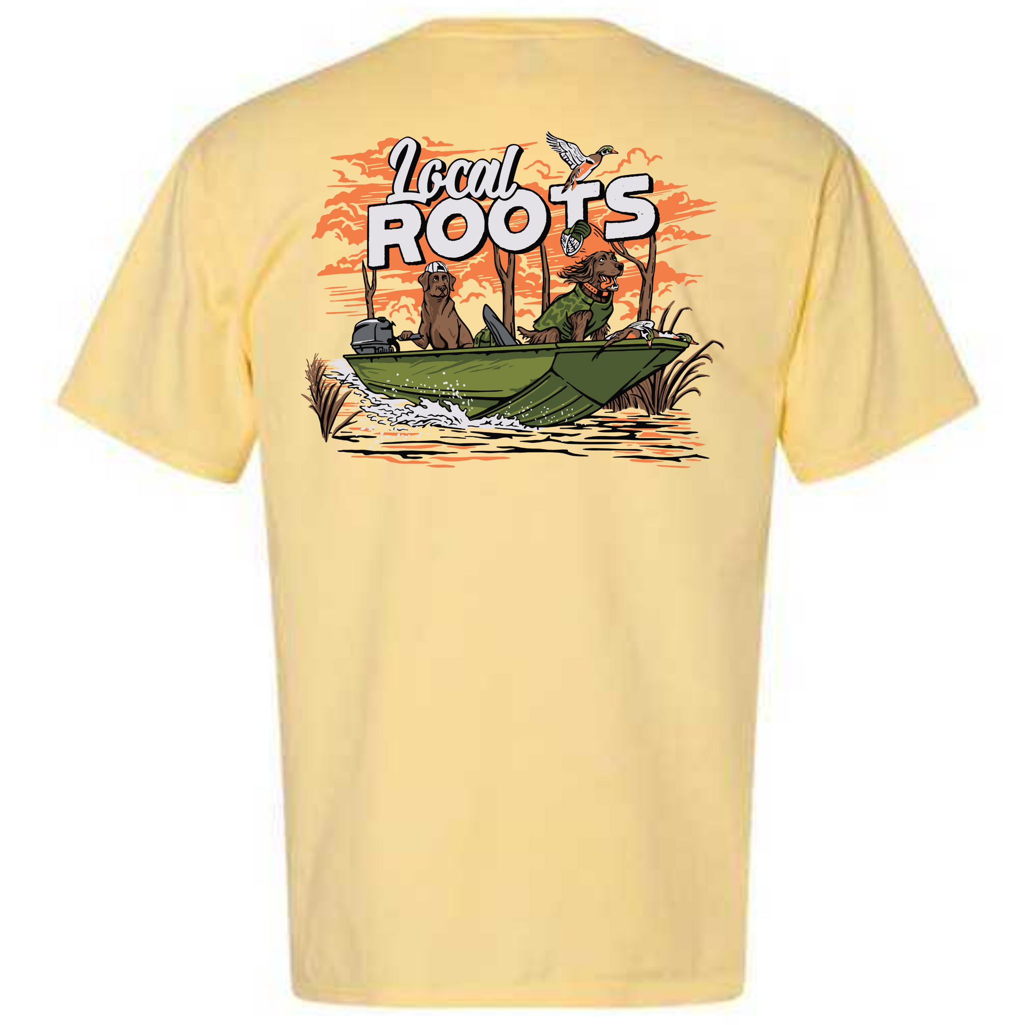 LOCAL ROOTS For those who know the hunt is about more than the game. Celebrate the journey, the companionship, and the tradition of duck hunting. Made from premium USA cotton, it's made for those who understand the call of the wild.