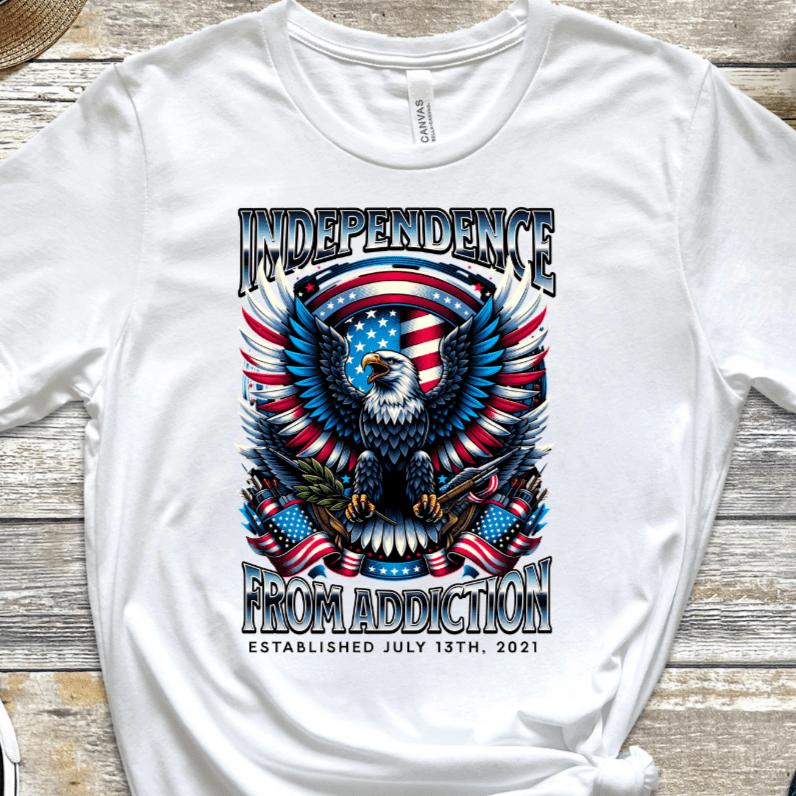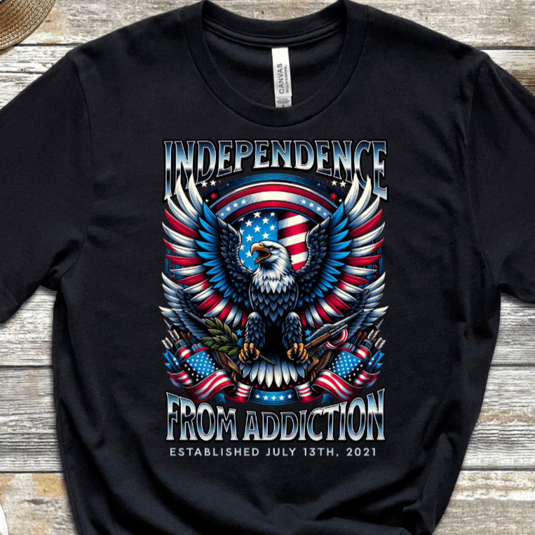 Make a fearless statement with the Custom Vintage Recovery T-Shirt from Inspiring Sobriety, boldly declaring "Independence From Addiction." This daring design symbolizes breaking free from past struggles and claiming your power with relentless strength. Wear it to showcase your courage and unstoppable drive toward true freedom.