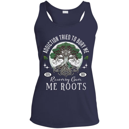 Stand strong with the Women's Recovery Tank from Inspiring Sobriety. Featuring the bold message "Recovery Gave Me Roots," this tank tells the story of how addiction tried to bury you, but recovery helped you grow deep and resilient. Wear it as a daring symbol of your strength and unwavering foundation.