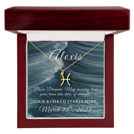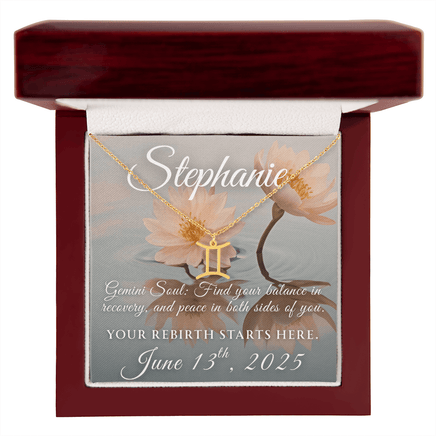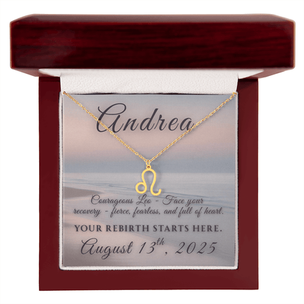 Imagine her smile when you give her this Recovery Themed Zodiac Name Necklace, personalized with her recovery date! Handcrafted with care, this piece is made from durable stainless steel and optionally dipped in 18k yellow gold and features her unique astrological sign. This would make an ideal gift for your beloved partner, family members, or dear friends on special occasions like anniversaries, birthdays, or any event where you want to express your love and appreciation in an unforgettable way.