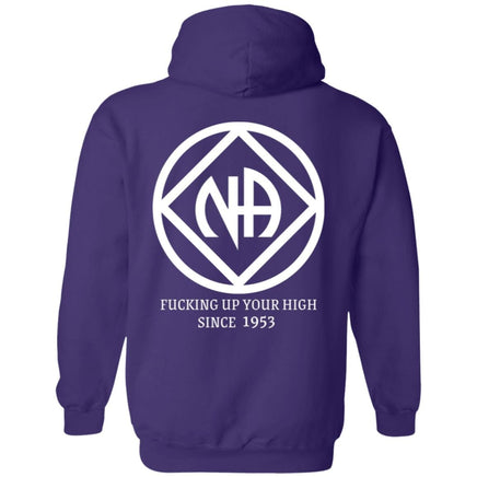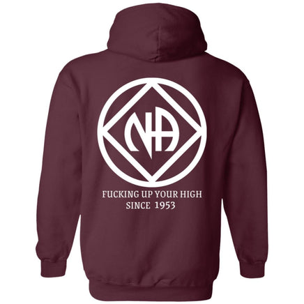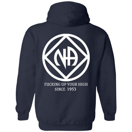 Stay sober in style with our NA Recovery Hoodie. Made for members of Narcotics Anonymous, this hoodie nods to the founding of NA with a cheeky twist. Say goodbye to old habits and hello to a new, inspiring journey. (No, we won't actually f' up your high - but we'll definitely keep you motivated.)