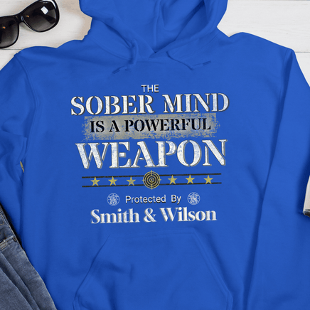 Our Recovery Hoodie has a powerful message that inspires sobriety. It features a tribute to the AA Founders “Smith and Wilson”, while highlighting the importance of the sober mind as a powerful weapon. Be motivated to stay sober in an exciting way!