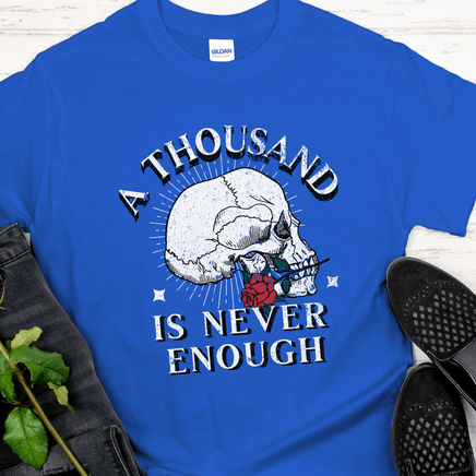 Be inspired and celebrate sobriety with our Recovery Unisex T-Shirt. Featuring an iconic phrase from Alcoholics Anonymous and Narcotics Anonymous, this shirt is a stylish and comfortable reminder that recovery is possible. Never underestimate yourself, and prove that you can have a "thousand and never enough"!