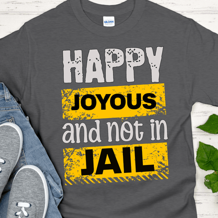 Say "later, felons" to your troubled past with our Recovery T-Shirt! Inspire your sobriety and let the world know you're Happy, Joyous, and (NOT) In Jail with this stylish tee - perfect for all AA and NA members. Hit restart and embrace a new chapter! 100% cotton