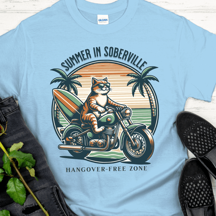 Embrace the hangover-free lifestyle with the Recovery T-Shirt from Inspiring Sobriety. Its playful design serves as a reminder to keep pushing through the ups and downs on the journey to sobriety. Perfect for a summer in Soberville and beyond. (Hangovers not included.)