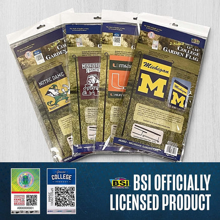 BRAND NEW Beautiful Officially Licensed Premium 2-sided 13 inch x 18 inch Garden Flag Banner! Garden Display Pole Sold Separately. A Must-Have for the TRUE fan! Product Features · DOUBLE-sided Garden Flag with beautiful color and graphics - 1" Reinforced Pole Sleeve for accepting garden pole for hanging · Made of Knitted Polyester · Dimensions: 13” wide x 18” long, Fits any standard garden pole · Decorated in Team Colors · Garden pole NOT INCLUDED, but available at any local hardware store or mass retailer · Officially licensed Great for the garden, hanging from the window and MORE!