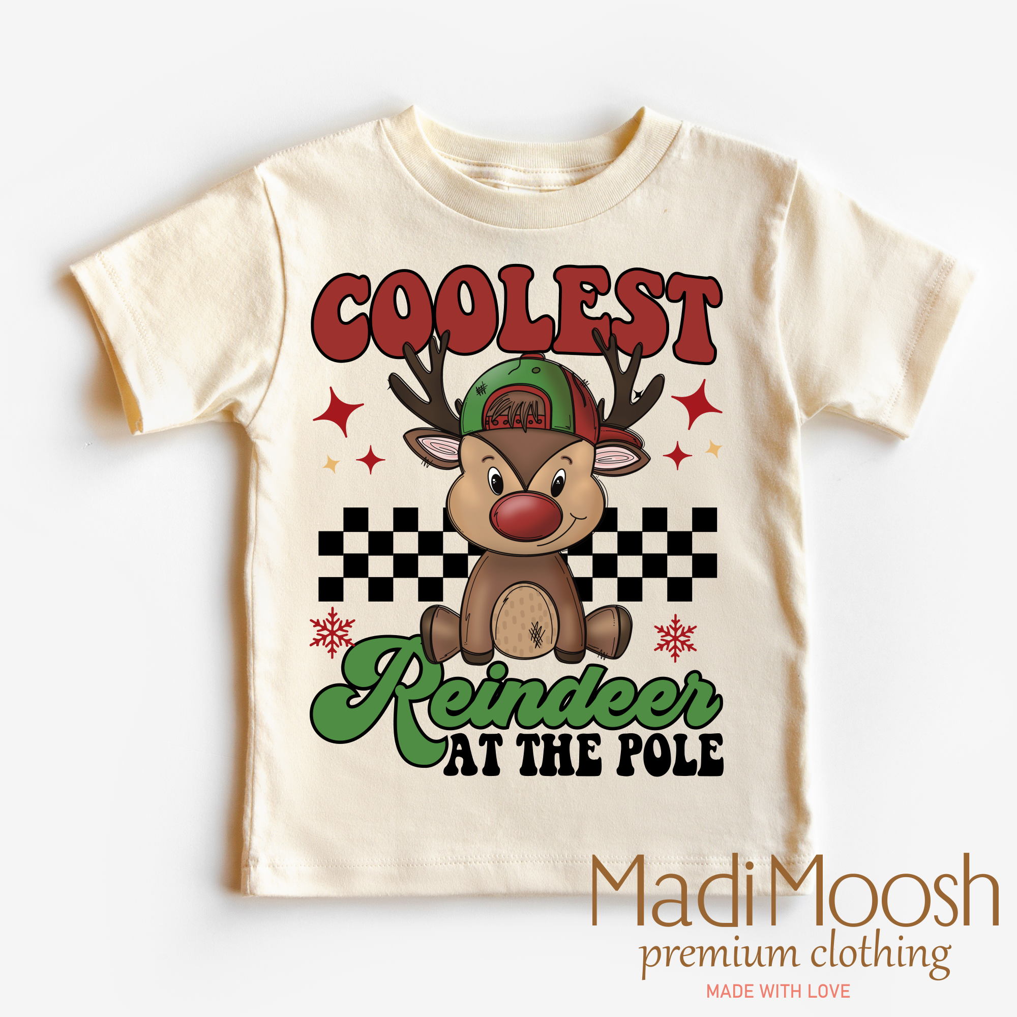 This boys' Christmas shirt features a cute reindeer design, perfect for holiday festivities. Made of soft, high-quality fabric, this tee offers comfort and style. Get your little one ready for the holidays with this adorable shirt.