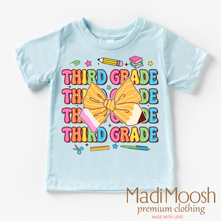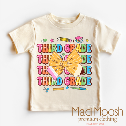 Get ready for the new school year with our Cute Third Grade School Shirt! This stylish t-shirt features a fun back to school design, perfect for the start of the third grade. Made with high-quality fabric, our shirt is comfortable and durable for all-day wear. Get yours now and show off your school spirit!