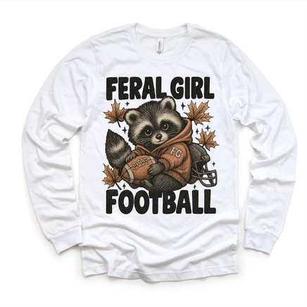 Show your fierce spirit with the Feral Girl Football Raccoon Shirt. Crafted from soft, breathable fabric, this football tee offers comfort and durability for game day or casual wear. Its unique raccoon design adds an edgy, athletic vibe, making it a standout piece for fans and players alike. Perfect for layering or wearing solo, this shirt combines style and function effortlessly.