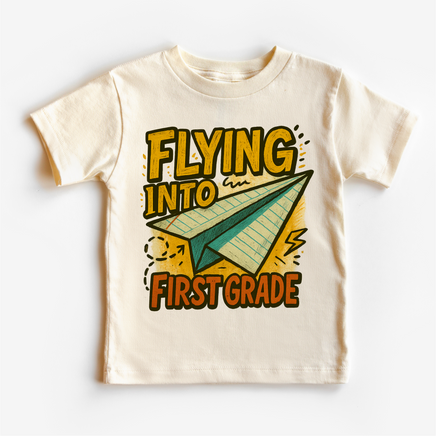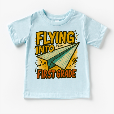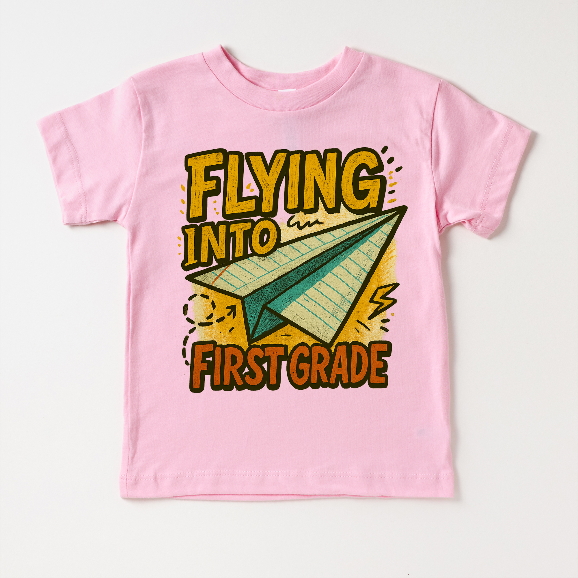 Celebrate your child's milestone with the Flying Into First Grade back-to-school tee. Crafted from soft, breathable fabric, this shirt ensures all-day comfort as your little one embarks on their first-grade journey. The vibrant design captures the excitement of the first day, helping boost confidence and enthusiasm for learning. Durable and easy to maintain, it’s a practical and stylish choice for parents seeking quality apparel to mark this special occasion.