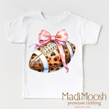 Stay stylish on and off the field with our Leopard Football And Pink Bow Shirt. This comfortable tee features a fierce leopard print design and adorable pink bow, perfect for football lovers and fashionistas alike. Made with high-quality material for maximum comfort and durability.
