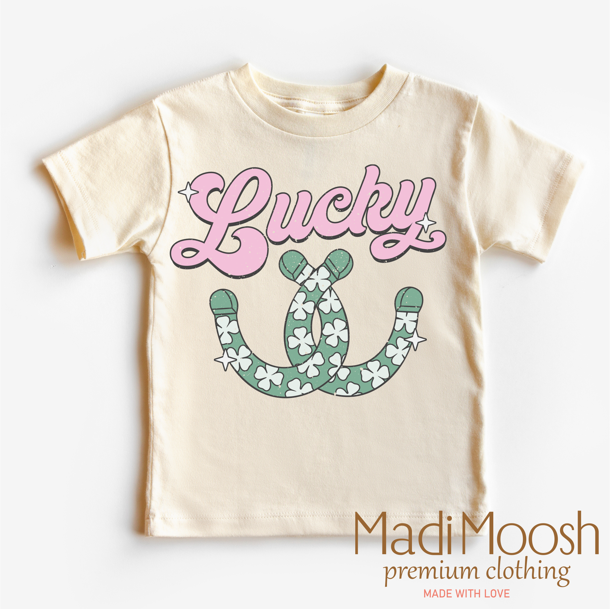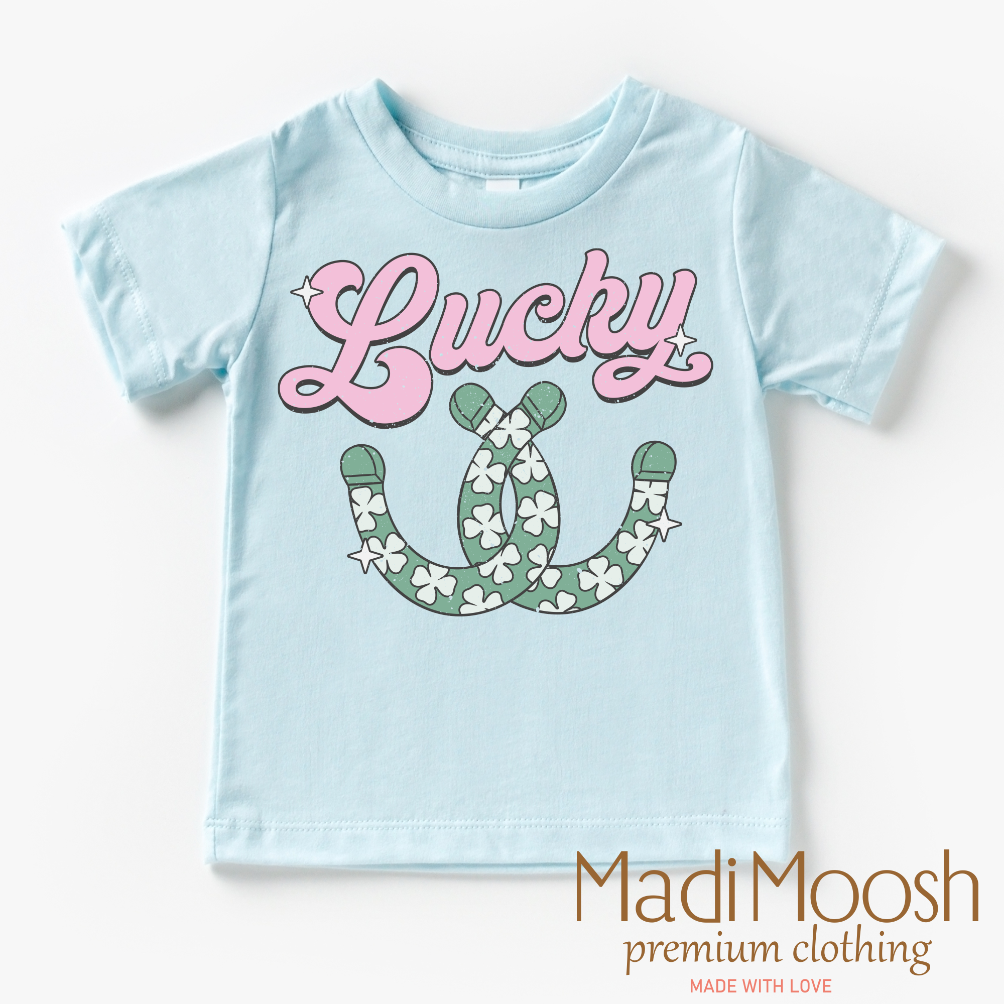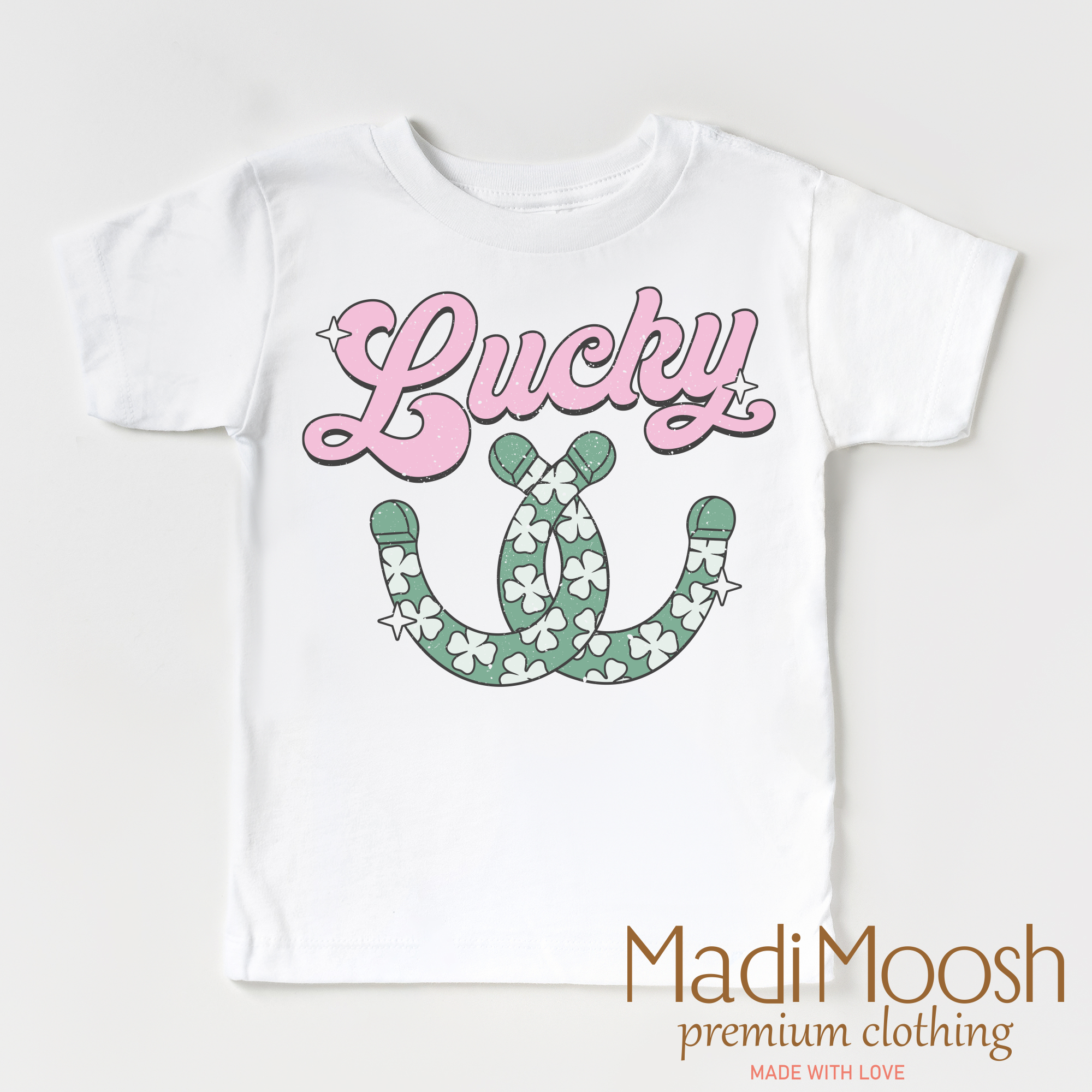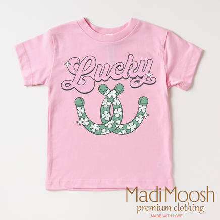 This St. Patrick's Day T-shirt features a lucky horseshoe design, perfect for celebrating the holiday. Made from high-quality materials, this comfortable shirt is a must-have for any St. Patrick's Day enthusiast. Show off your festive spirit with this stylish and fun tee.