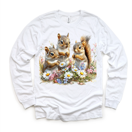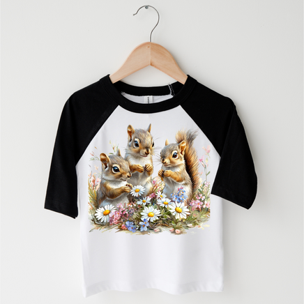 This kids tee showcases a stunning, hand-painted nature scene of a squirrel in a vibrant spring setting. Made from soft, breathable fabric, it's perfect for your little ones to wear during outdoor adventures. Bring a touch of retro charm to their wardrobe with this unique watercolor print shirt.