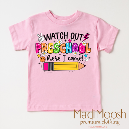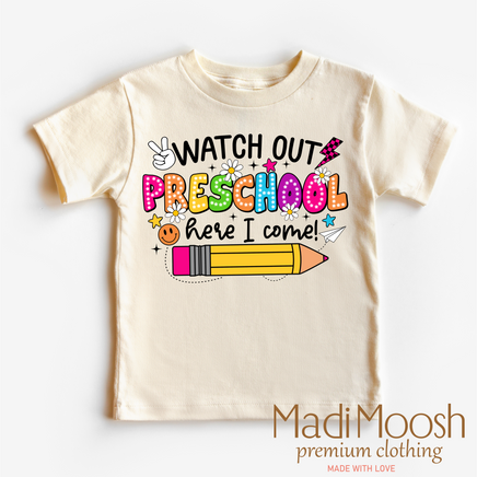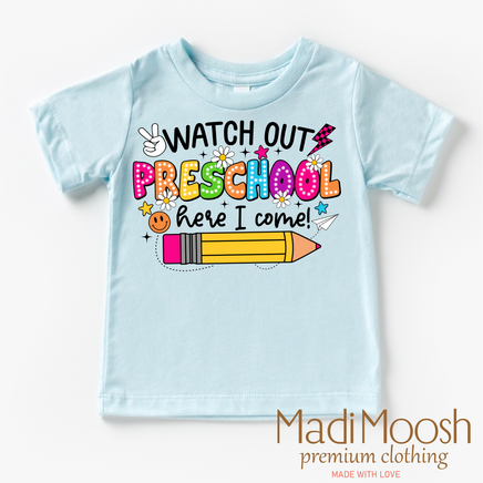 Home → Moosh Fashion → Watch Out Preschool Here I Come Shirt - Back To School Shirt