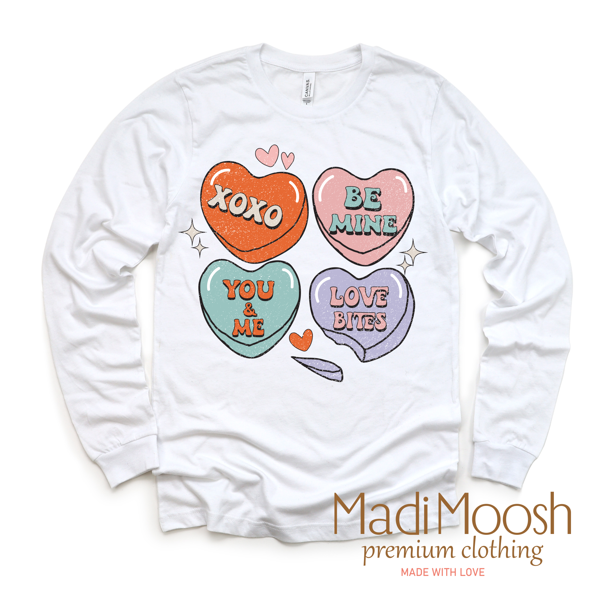 This XOXO Candy Hearts Valentine Shirt is the perfect addition to your Valentine's Day wardrobe. Made with high-quality materials, this tee offers both style and comfort. Show off your love with this festive Valentine tee.
