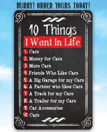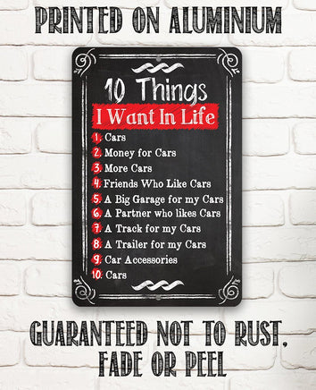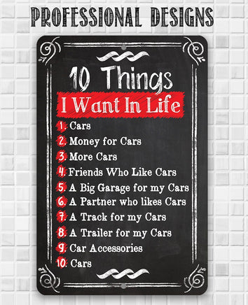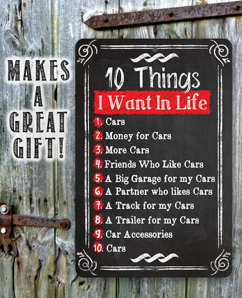 Tin - 10 Things I Want -Durable Metal Sign-8"x12" or 12"x18"-Use Indoor/Outdoor-Garage Decor and Gift to Car Enthusiasts