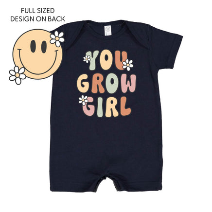 You Grow Girl on Front w/ Smiley and Flowers on Back - Short Sleeve / Shorts - One Piece Baby Romper